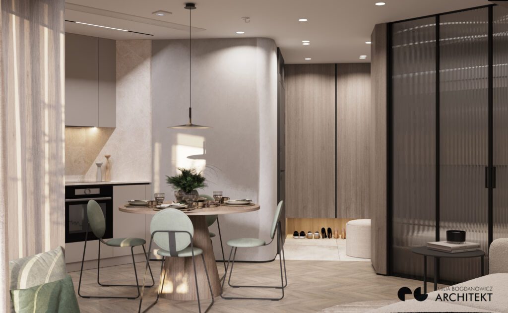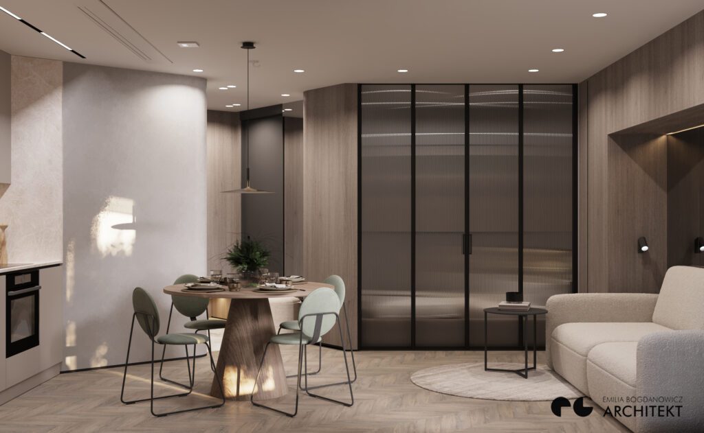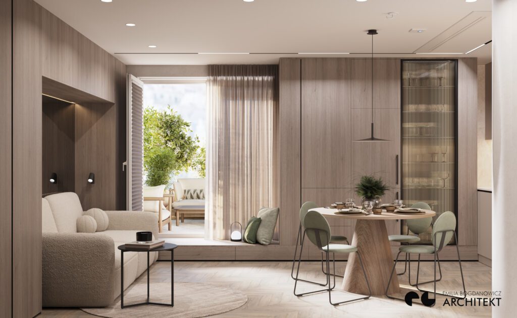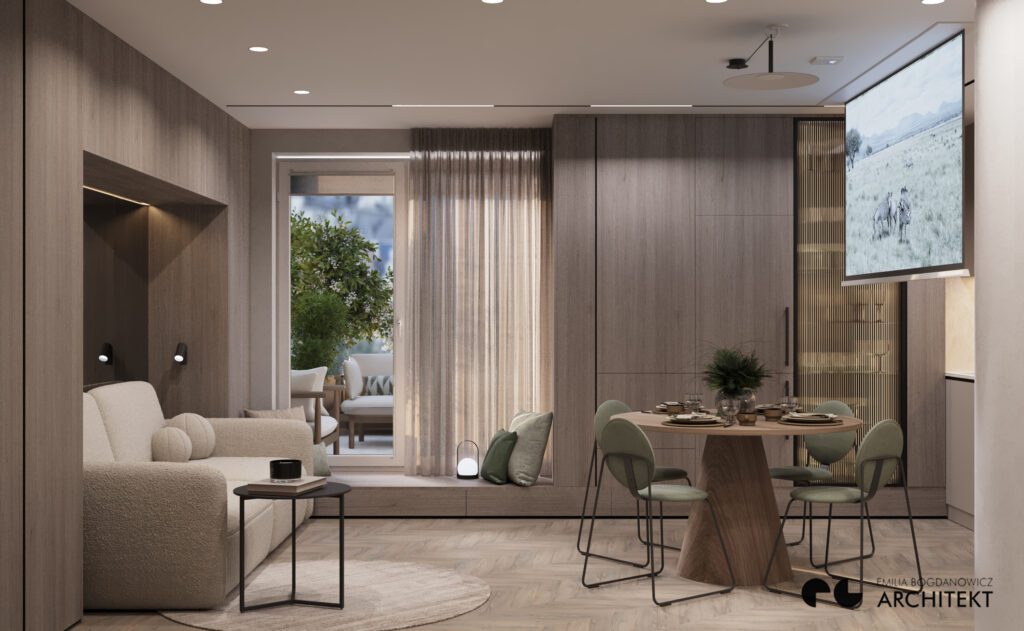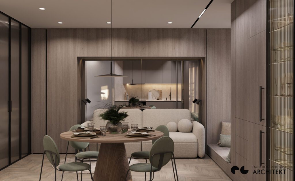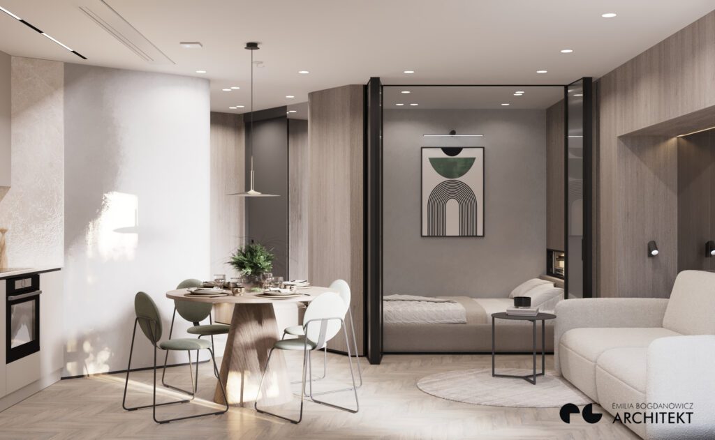 Ustawna kawalerka w stylu Japandi – funkcjonalność w nietypowej formie