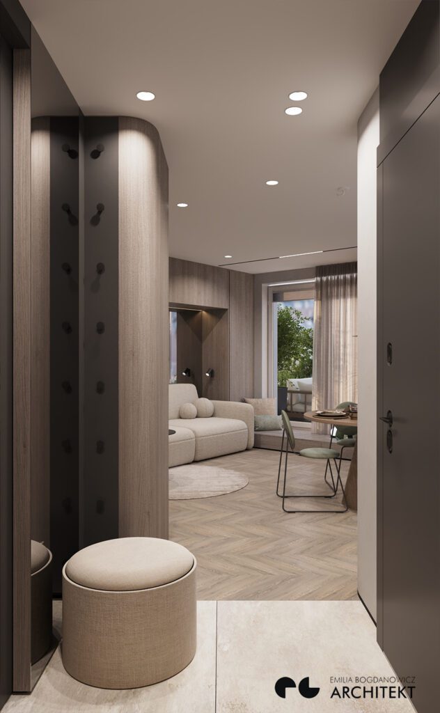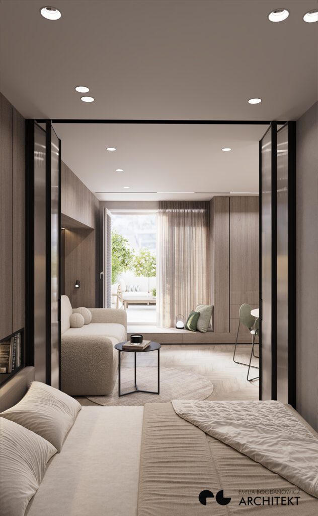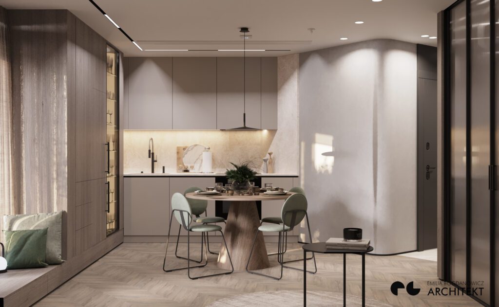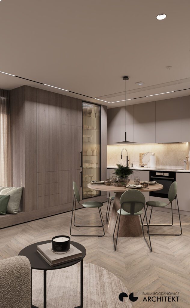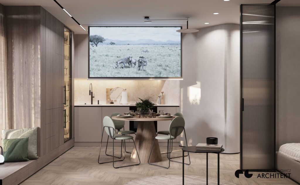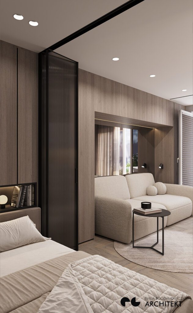 Ustawna kawalerka w stylu Japandi – funkcjonalność w nietypowej formie