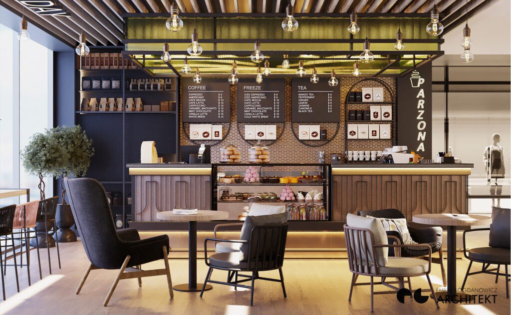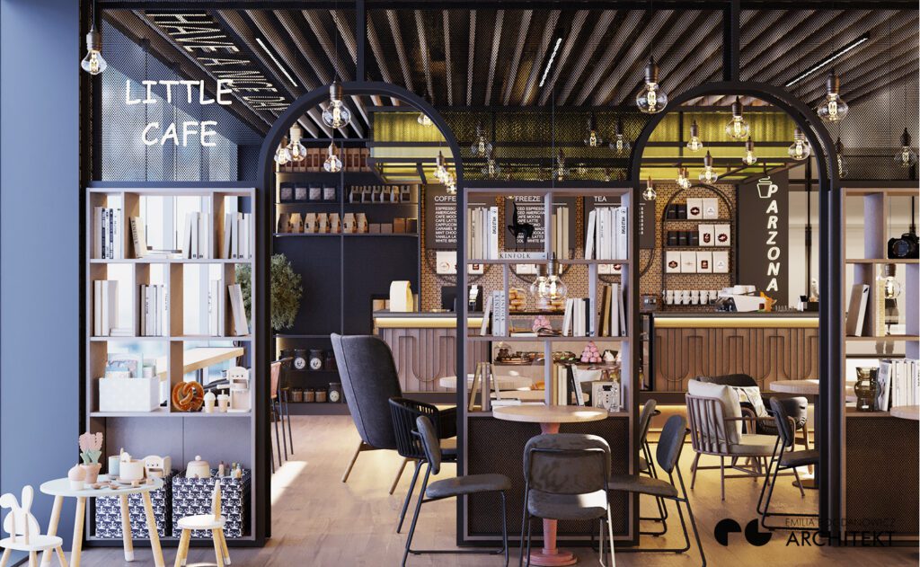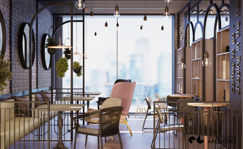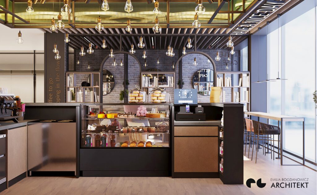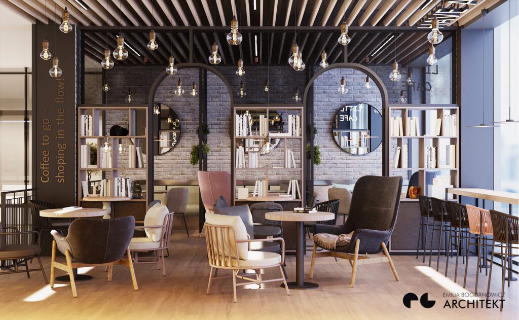 Projekt kawiarni w centrum handlowym – przytulność w sercu miejskiego zgiełku