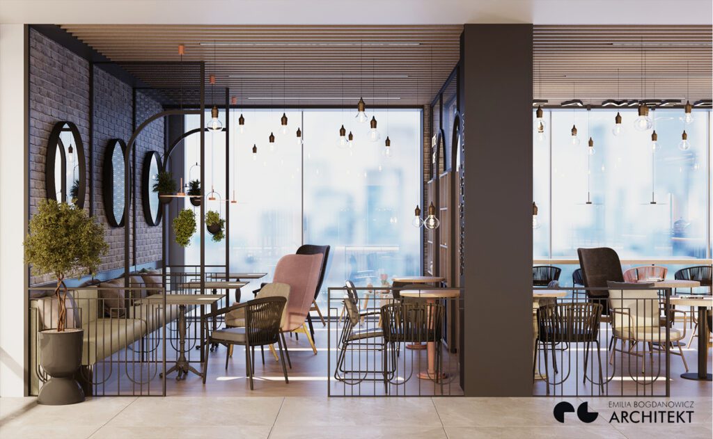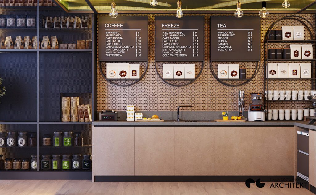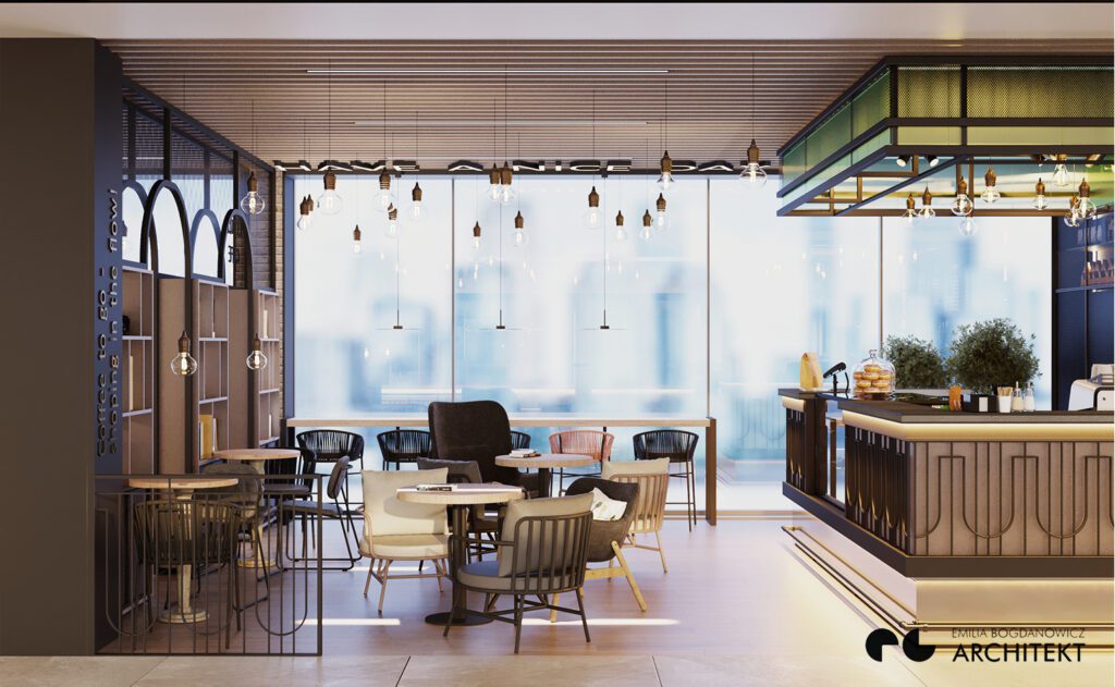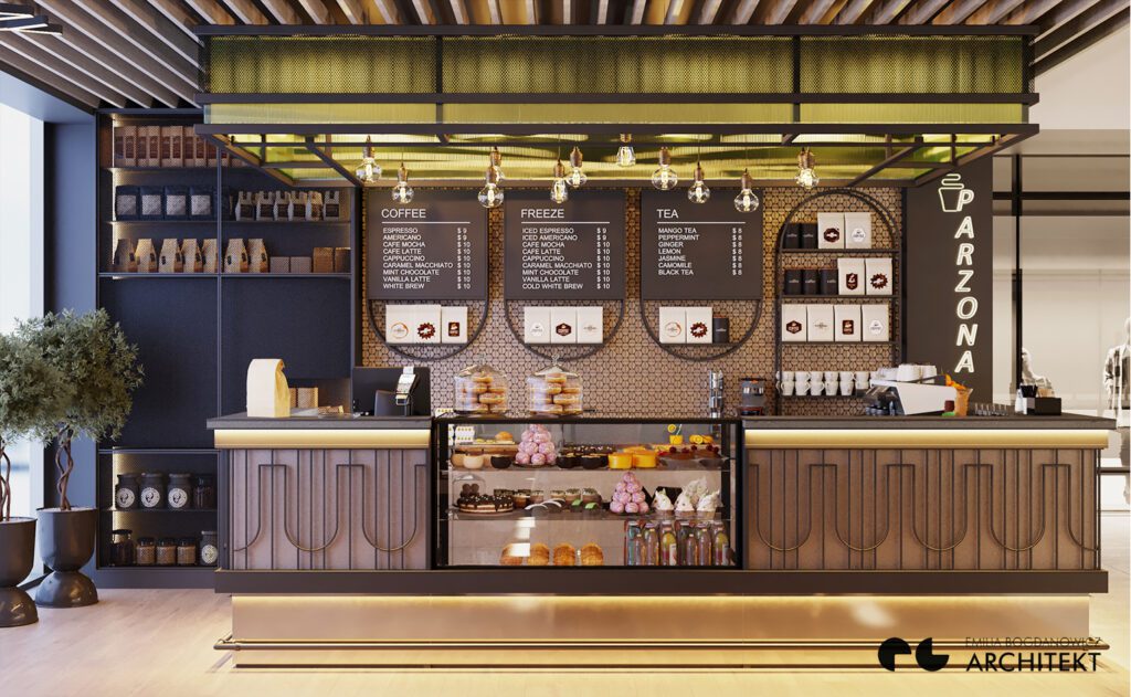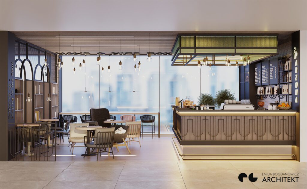Projekt kawiarni w centrum handlowym – przytulność w sercu miejskiego zgiełku
